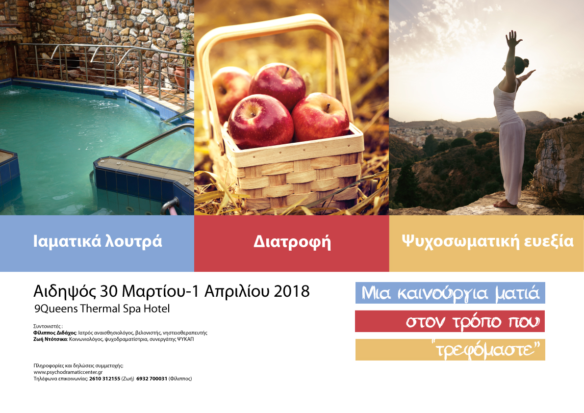 - Οι διατροφικές μας συνήθειες και οι πραγματικές διατροφικές μας ανάγκες, μέσα από μια ψυχοδραματική ματιά. (10.30 – 13.30).