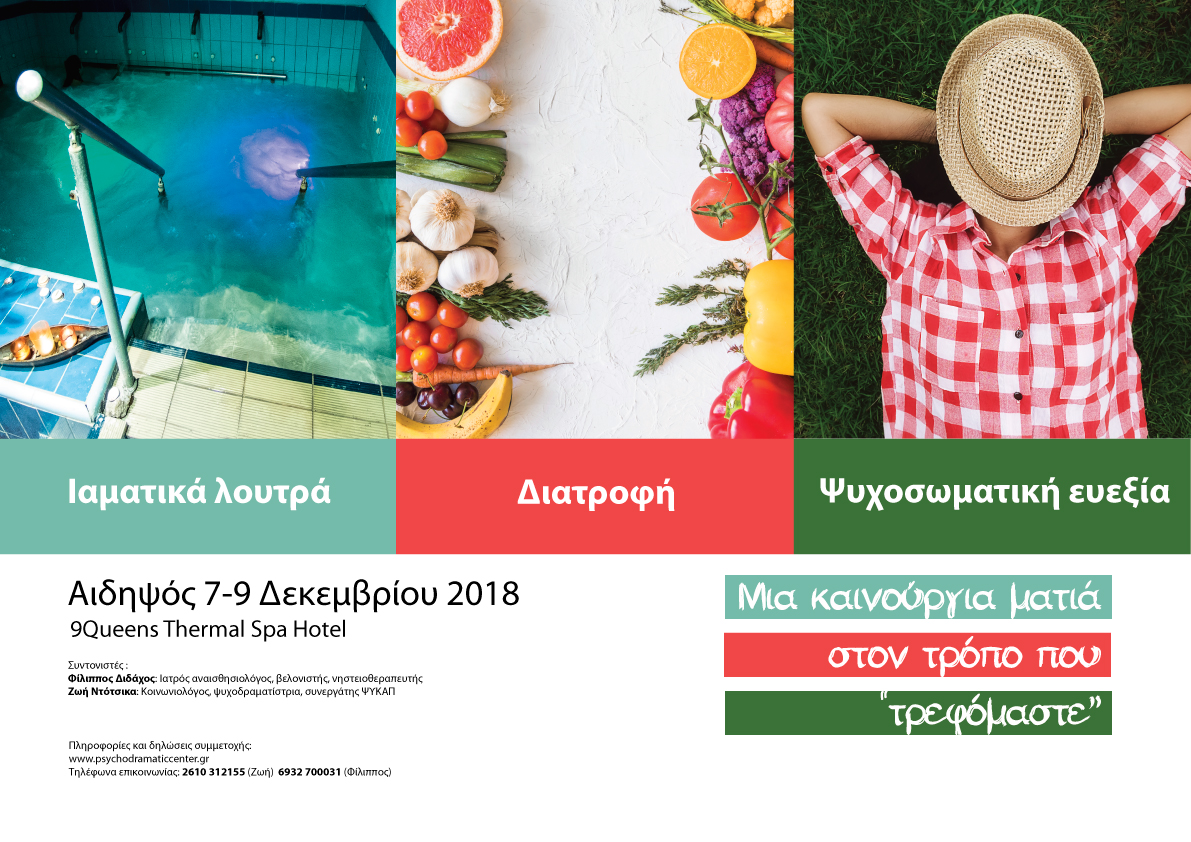 - Οι διατροφικές μας συνήθειες και οι πραγματικές διατροφικές μας ανάγκες, μέσα από μια ψυχοδραματική ματιά. (10.30 – 13.30).
