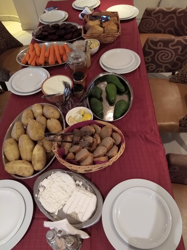 Πρωινό : φρούτα ή αυγά, γιαούρτι, ανθότυρο, αβοκάντο, ψωμί – φρυγανιά.